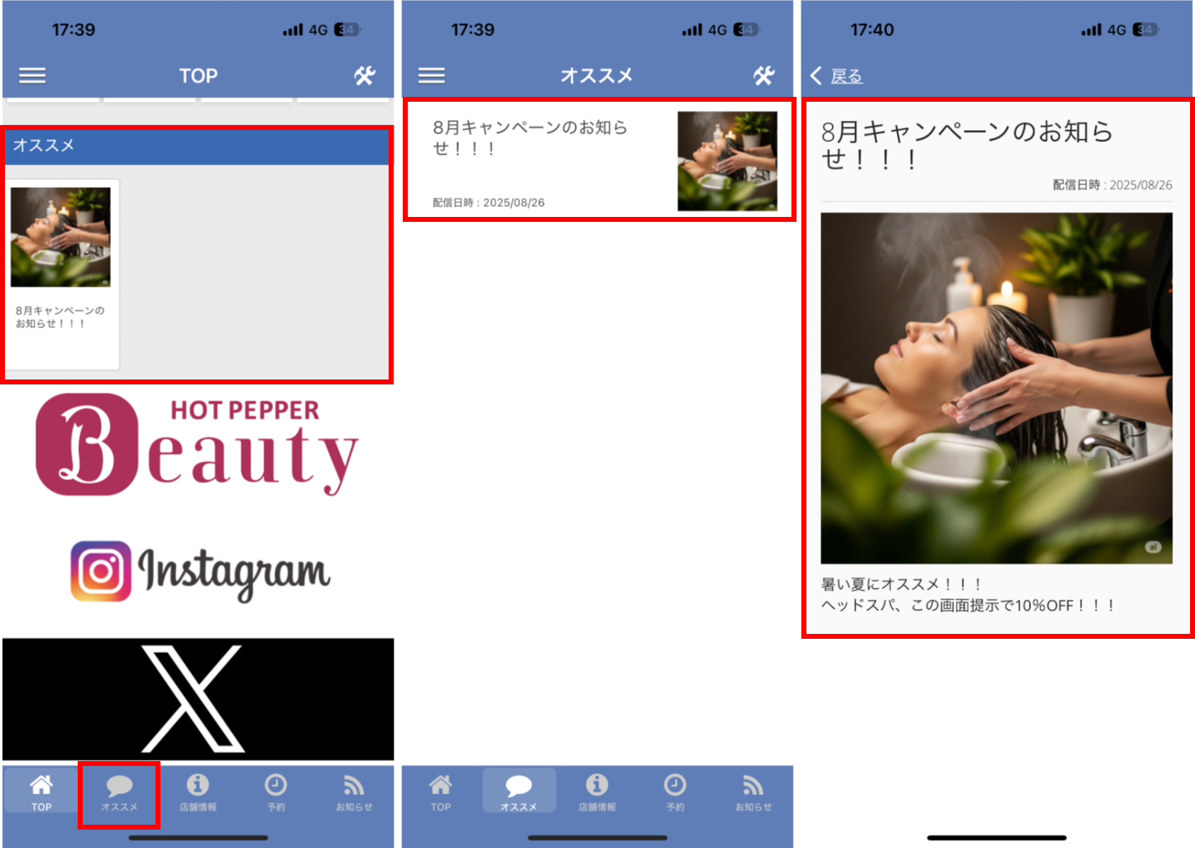 | プッシュ通知 | オススメを作成した際に、スマホに通知を送れる設定です。 |