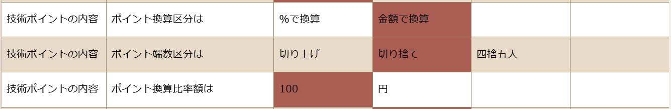 明細(技術、商品)毎・・・技術、商品ごとにポイントが表示されます。