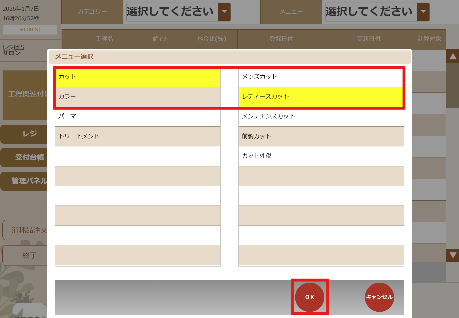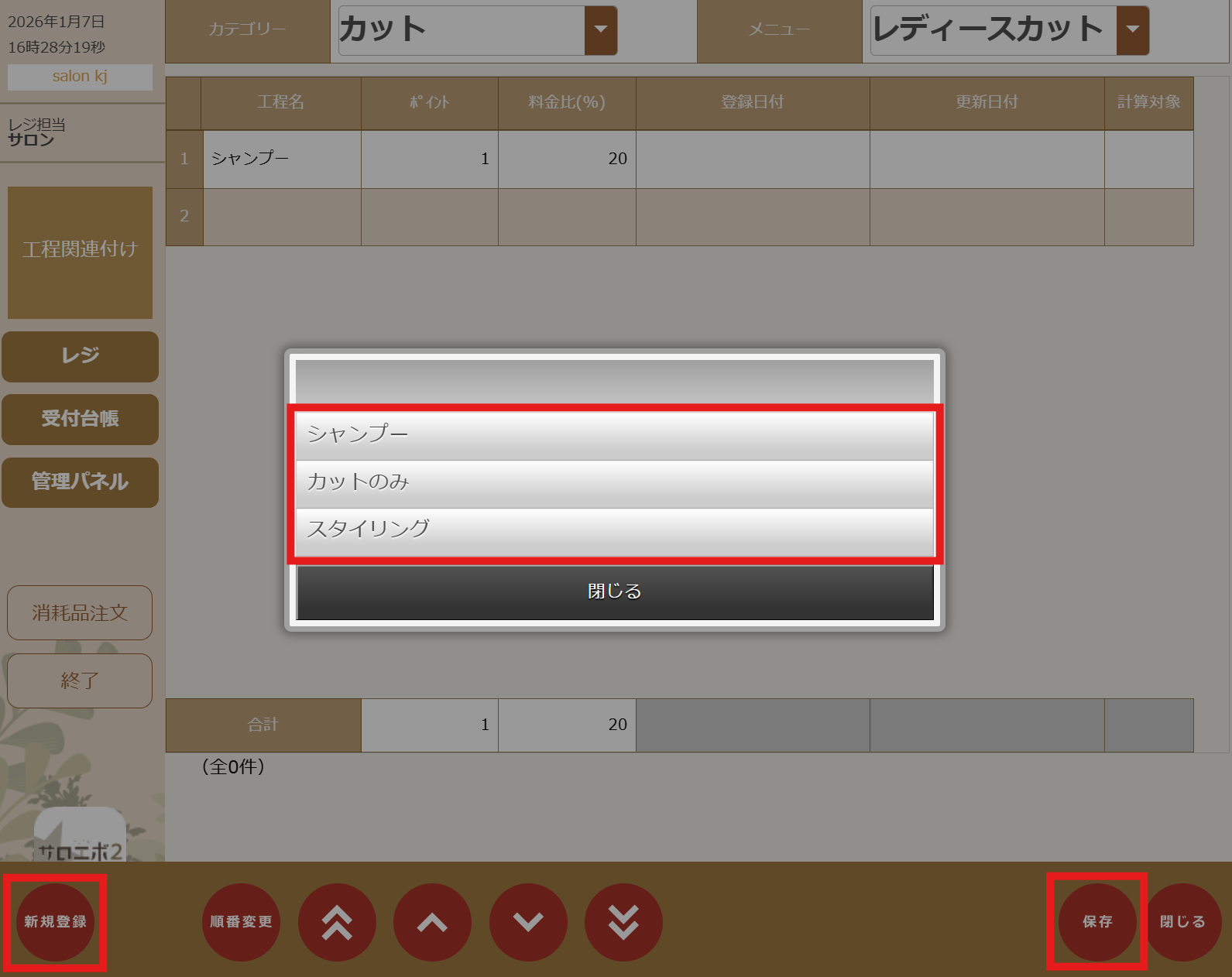 ①工程紐づけたい技術カテゴリ・メニューを選択し、【OK】をタップします。②左下部の【新規登録】から紐づける工程を選択し、【保存】をタップで完了です。
