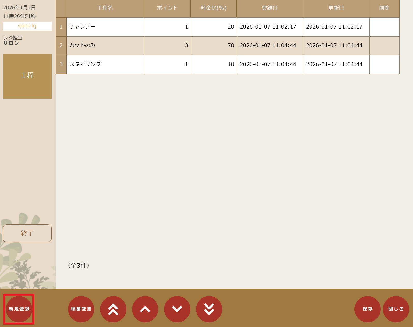 ④ 料金比を入力し【Enter】をタップ。※料金比とは、メニュー料金からの工程の料金比を設定できます。(サロン取り分計算後。)
