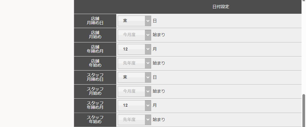■集計の月締め日・年始めを設定できます。設定した現在の設定はページ下部に表示されます。