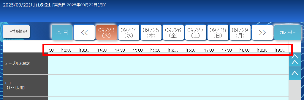 予約台帳を表示した際の最初に表示される時刻を指定できます。