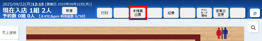 過去に発行した未精算のままの伝票を営業日を変更して会計できます。