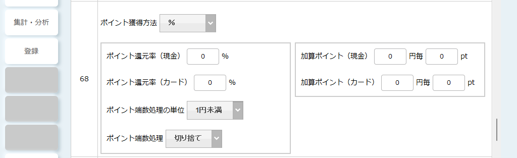 ポイント付与時の計算に消費税・使用ポイント分を含めるか、それぞれ設定できます。