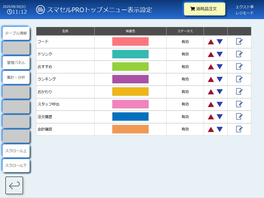 スマセルPROトップメニュー表示設定